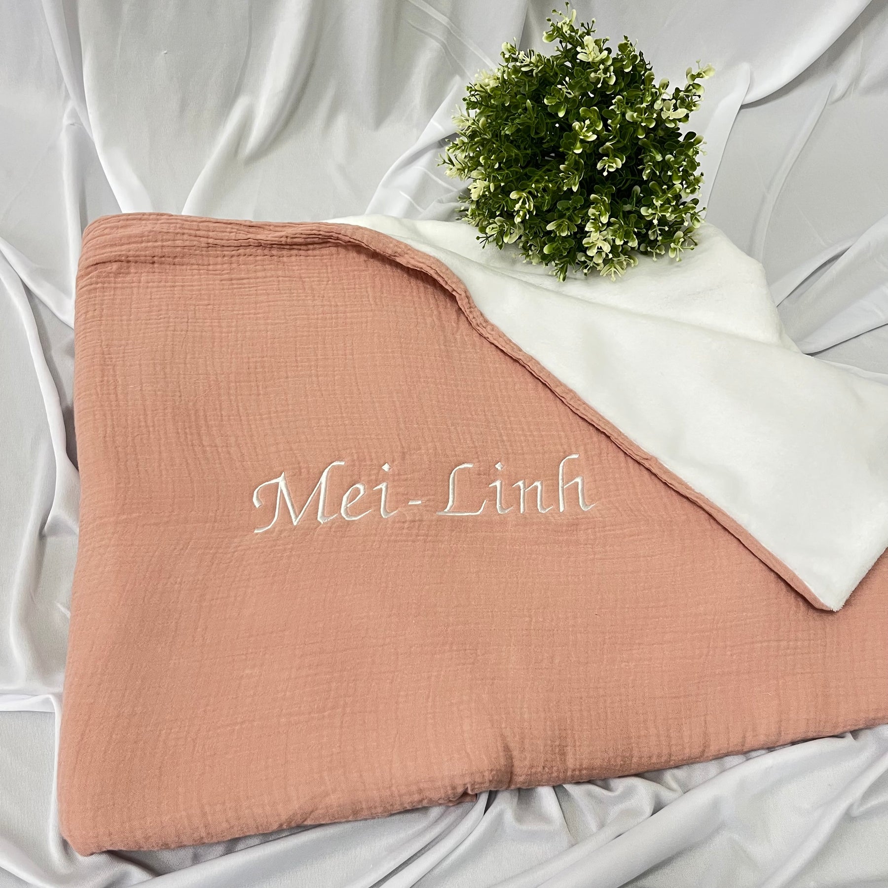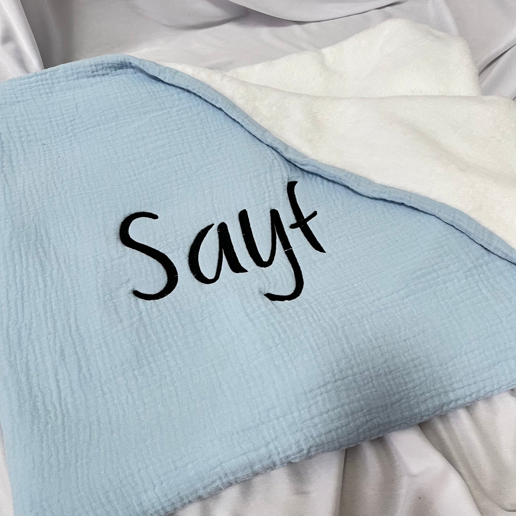 Offrez douceur et originalité avec notre couverture bébé en gaze de coton personnalisée en broderie.