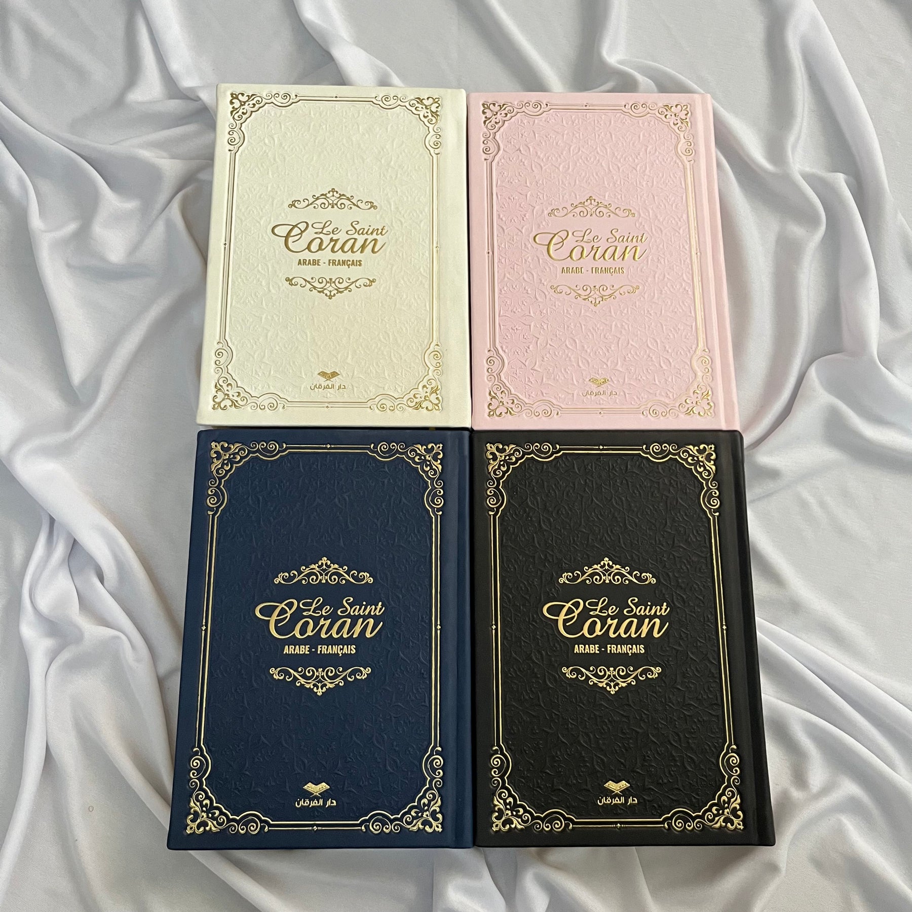 Coran en langue arabe accompagné d’une traduction française, présenté dans une mise en page claire pour une lecture structurée.